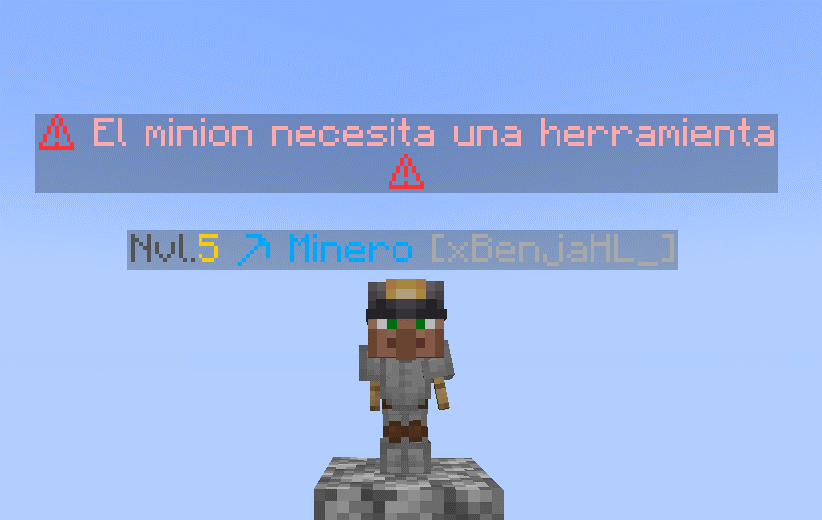 ➮Minero: Minion minero su trabajo es minar automaticamente, mientras el jugador esta en movimiento haciendo demas cosas, solo se desactiva si el jugador se desconecta de la modalidad, o sale de la isla.