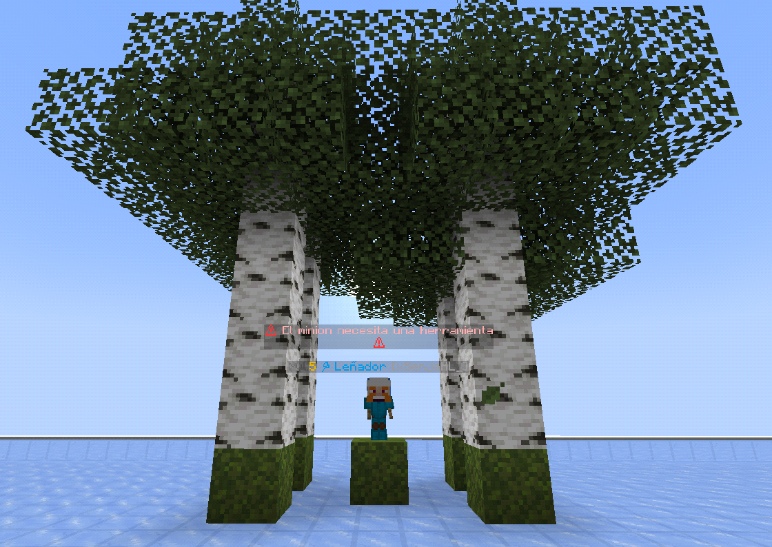 Minion Leñador: El Minion Leñador... Se Encarga de Talar cualquier Tipo de raiz de tronco de Arbol automaticamente, Tenerlos Cercas a los Arboles para que pueda realizar el talamiento con los Bloques, Al Talarlos los replanta en el mismo bloque donde Fue Talado el Arbol, una ves crecido el Minion vuelve a Talarlos y a Sobre plantarlos de Vuelta
