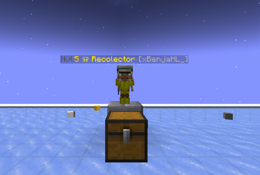 Minion Recolector: El Minion Recolector Sirve mas para, retirar los items dropeados mas cercanos, los recolecta y los guarda en el cofre vinculado, este Minion puede Servir mas para granjas de mobs que al morir los items quedan tirados y el minion los recolecta y sirve para mas granjas que dropeen otros tipos items.